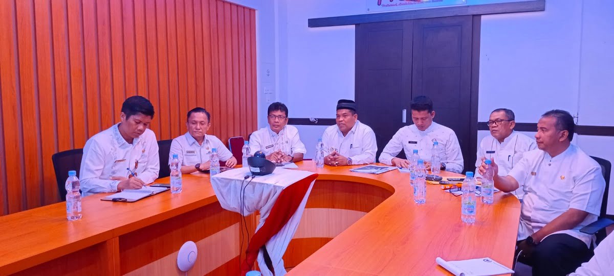 RAPAT—Bupati Padangpariaman Suhatri Bur pimpin rapat membahas pengerjaan pembangunan Cekdam Sungai Limau telah putus kontrak dengan kontraktor sebelumnya.