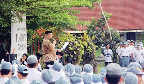 PADANG, METRO–Anggota DPR RI asal Sumatra Barat (Sumbar) H Andre Rosiade menjadi pembina upacara bendera Hari Guru Nasional (HGN) ke-78 di SMA 2 Padang, Senin (27/11). Andre Rosiade didapuk membacakan amanat Menteri Pendidikan, Kebudayaan, Riset, dan Teknologi Republik Indonesia Nadiem Makarim.