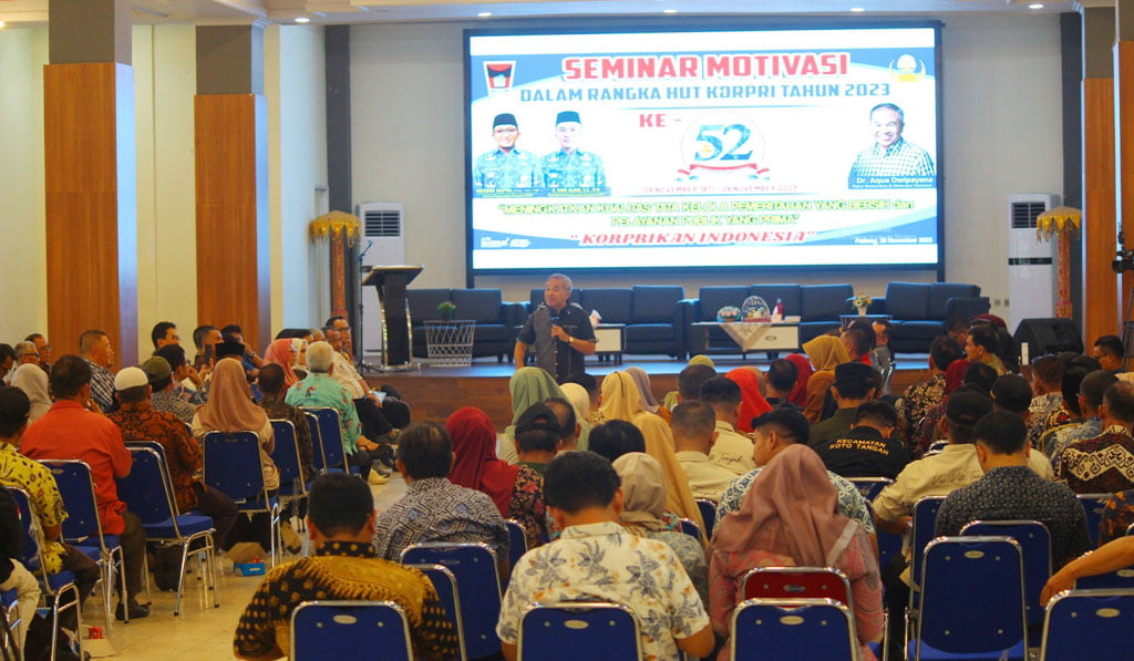 AZIZ CHAN, METRO–Pemerintah Kota (Pemko) Padang Padang meng­gelar acara Sharing Komunikasi dan Motivasi Kepada Kepala Organisasi Perangkat Daerah beserta lurah di Lingkungan Pemko Padang Padang. Acara tersebut dalam rang­ka memeriahkan HUT Korpri ke-52 tahun 2023.