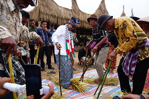 TANAHDATAR, METRO–Manyabik dan mairiak padi mewarnai pelaksanaan Program Satu Nagari Satu Event bertajuk Baluluak Bajarami Season 2 Nagari Kumango Kecamatan Sungai Tarab, Kamis (30/11). Pembukaan festival itu ditandai dengan Prosesi manyabik padi (menyabit padi) dilakukan Bupati Tanah Datar Eka Putra bersama petani setempat, dilanjutkan prosesi Mairiak yakni proses pelepasan bulir padi dari batangnya dengan cara manual dan alat yang sederhana.