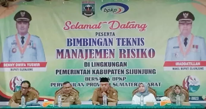 SIJUNJUNG, METRO–Pemkab Sijunjung melalui Inspektorat Daerah bersama BPKP Perwakilan Sumbar menggelar Bimbingan Teknis (Bimtek) Manajemen Risiko dan Penyusunan Register Risiko pada Pemerintah Kabupaten Sijunjung yang dilaksanakan di Gedung Pancasila Muaro Sijunjung, Selasa (5/12.