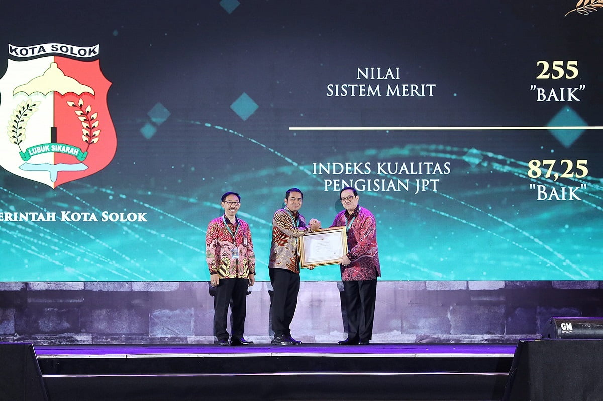 Dari hasil penilaian KASN di 585 instansi pemerintah,Kota Solok mendapat nilai 255 atau kategori baik dalam penerapan sistem Merit dan 87,25 atau kategori baik untuk indeks kualitas pengisian JPT.