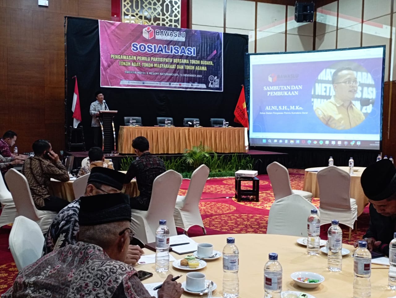 TANAHDATAR, METRO–Bawaslu Provinsi gelar sosialisasi pengawasan pemilu partisipatif bersama tokoh budaya, tokoh adat, tokoh masyarakat dan tokoh agama, Kamis (14/12) pagi di salah satu hotel, di Batusangkar.