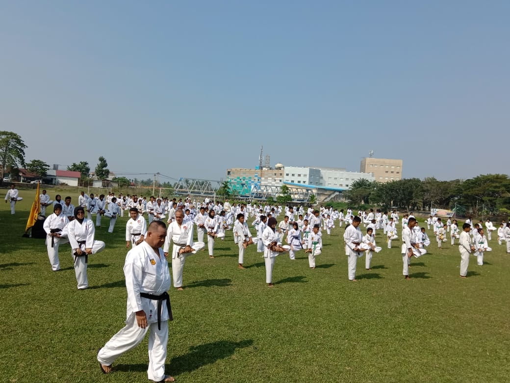 PADANG, METRO–Seribuan Karateka Dojo Lemkari se-Kota Padang dan Sabuk  Hitam Senior dibuat bercucuran keringat pada Latihan Gabungan (Latgab) Akhir Tahun 2023 di Lapangan Bola Belakang Kompi Yonif 133 Kelurahan Kampung Lapai Nanggalo, Minggu (17/12).
