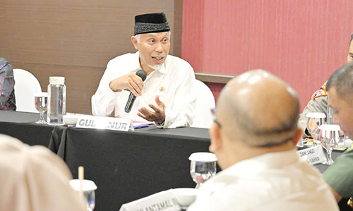PADANG, METRO–Gubernur Sumbar Mahyeldi Ansharullah, memimpin Diskusi Grup Terpumpun (DGT) atau Focus Group Discussion (FGD) bersama Forum Koordinasi Pimpinan Daerah (Forkopimda) Sumbar, dalam rangka membahas kesiapan daerah menghadapi masa libur Natal dan Tahun Baru (Nataru) 2024.