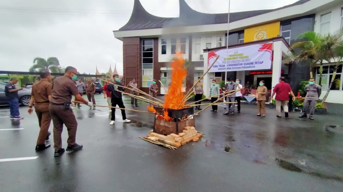 Kepala Kejaksaan Negeri Agam, Burhan, SH, MH didampingi Kasi Pengelolaan Barang Bukti dan Barang Rampasan, Dhony Armandos, SH. M.Han menyampaikan pemusnahan barang bukti merupakan salah satu tugas jaksa dalam melaksanakan putusan pengadilan.