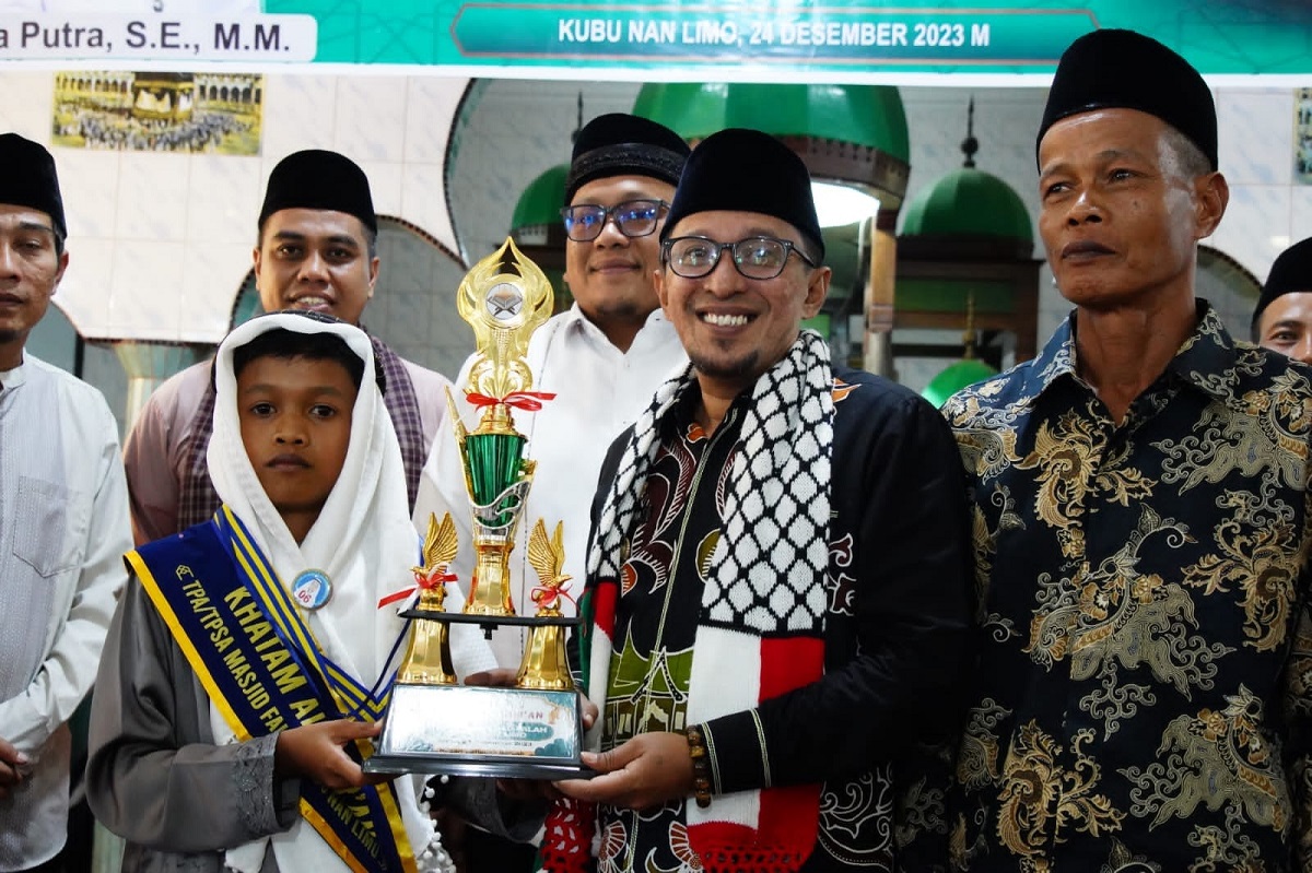 TANAHDATAR, METRO–Khatam bukan akhir dalam belajar Al-Quran, namun hendaknya ini dijadikan awal untuk lebih giat lagi untuk mempelajari isi kandungan hingga menjadi penghafal Al-Quran atau hafizh/hafizah. Hal tersebut disampaikan Bupati Tanah Datar Eka Putra SE MM saat menghadiri perayaan Khatam Al-Quran di Masjid Fallah, Jorong Kubu Nan Limo Nagari Batipuh Baruah Kecamatan Batipuh, Minggu (24/12).