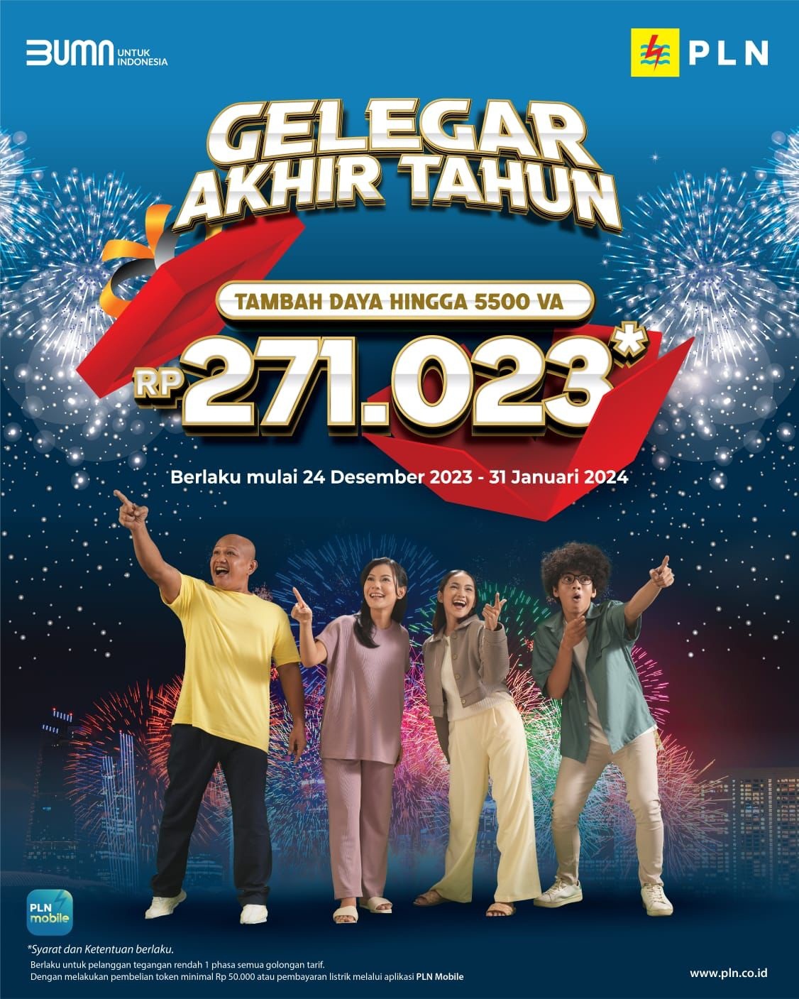 Spesial Akhir Tahun, PLN Gelar Promo Tambah Daya hingga 5.500 VA hanya Rp271.023
