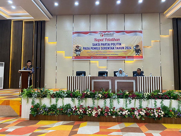 “Saksi bisa memahami dalam penghitungan suara nanti. Kemudian bisa mengetahui kompetensi saksi nantinya. Kemudian saksi juga bisa memetakan berbegai potensi masalah yang ada di TPS,” demikian disampaikan Aan Muharman, dalam kegiatan Rapat Pelatihan Saksi Partai Politik pada Pemilu Serentak tahun 2024 di aula Hotel Mangkuto, Kota Payakumbuh, Selasa (2/1) pagi.