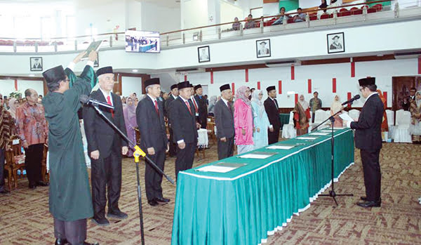 Pelantikan para Wakil Rektor dan Direktur Sekolah Pasca Sarjana serta Ketua Lembaga Universitas Andalas itu, berlangsung di gedung Convention Center Unand, pada Rabu, (3/1) pagi.
