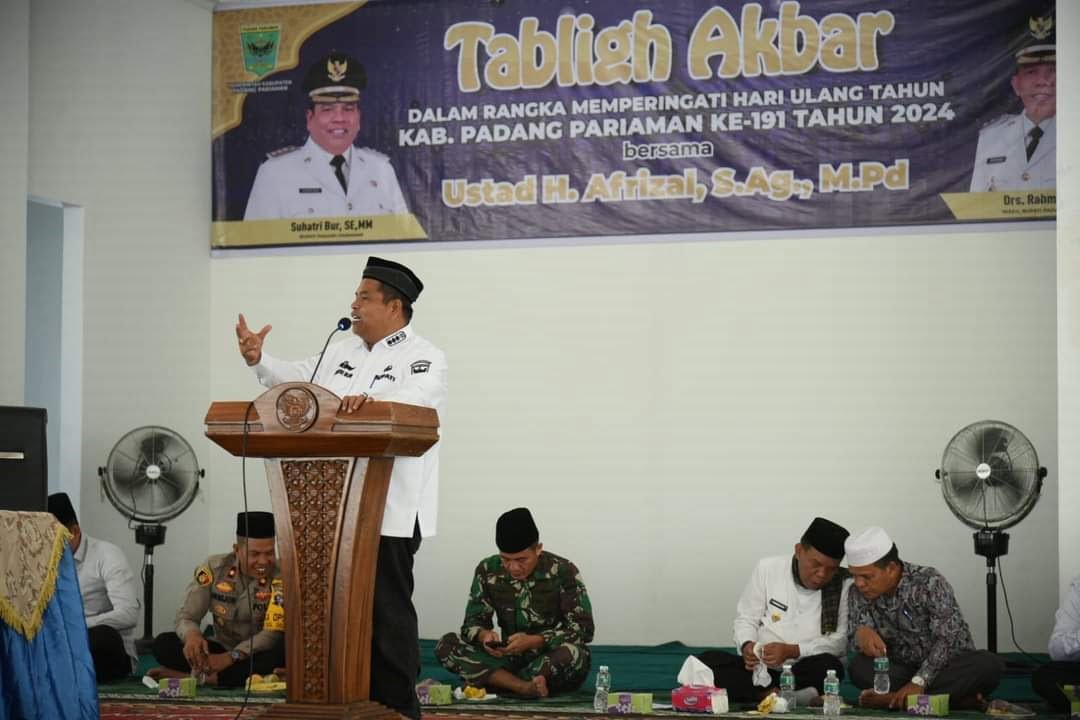 Suhatri Bur, menyampaikan harapannya bahwa kegiatan Tabliq Akbar ini dapat mempererat tali silaturahmi dan mengoptimalkan peran aktif para ulama serta organisasi keagamaan di Kabupaten Padangpariaman. Lebi lanjut ia menambahkan, Pemerintah Kabupaten Padangpariaman memberikan apresiasi setinggi-tingginya kepada seluruh panitia HUT yang telah berhasil menyelenggarakan kegiatan ini.Suhatri Bur menekankan bahwa Tabliq Akbar yang merupakan salah satu rangkaian peringatan HUT Padangpariaman ini merupakan wujud syukur kepada Allah karena usia Kabupaten Padangpariaman telah menyentuh angka 191 tahun. “Pada usia ke 191 tahun ini, Kabupaten Padangpariaman dinilai, sudah cukup dewasa. Tentu kita sebagai pelayan masyarakat, abdi negara, juga harus lebih dewasa dalam bersikap. Bagaimana kita terus menerus memperbaiki diri, terus menerus berinovasi, dalam rangka memberikan pelayanan prima bagi masyarakat,” ujarnya.