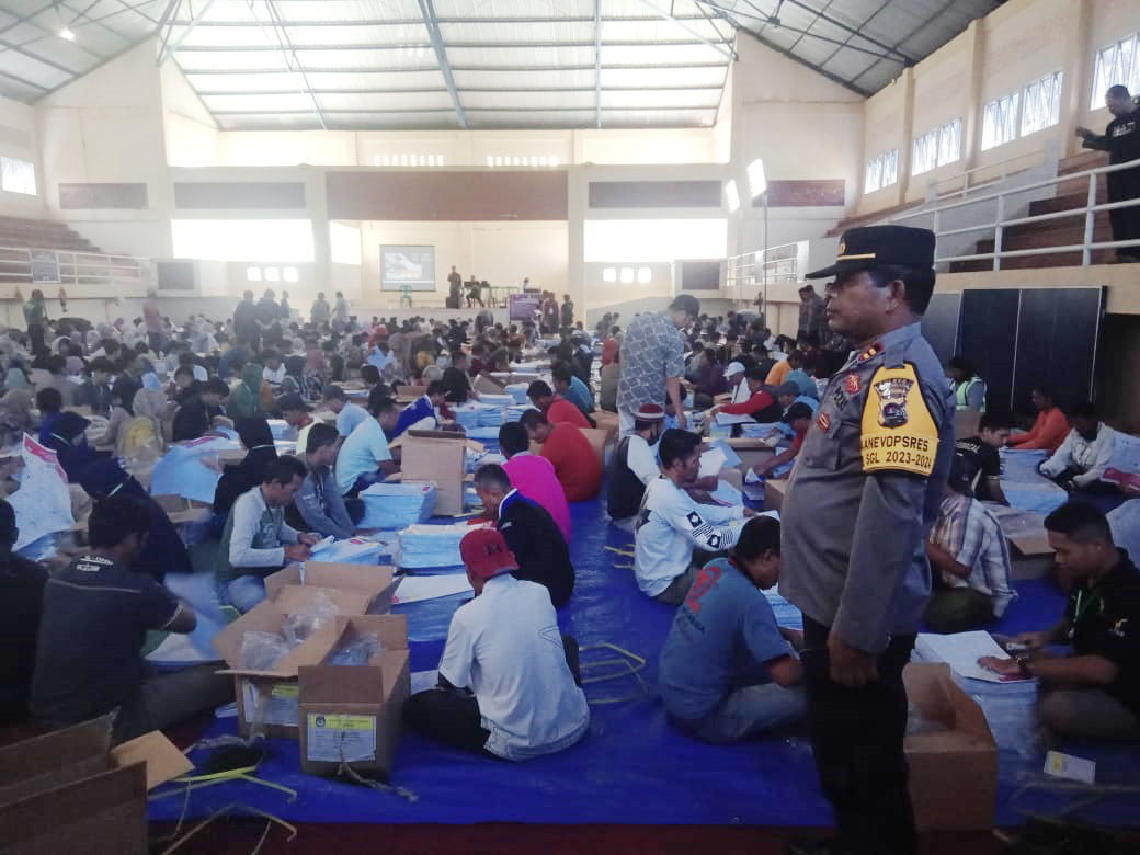 PESSEL METRO–Pantuan Posmetro di goor M. Zaini Zein Painan, Pincuran Boga, Kecamatan IV Jurai, Kabupaten Pesisir Selatan, Jumat (12/1/2024) pensortiran dan pelipatan Surat suara dimulai hari pertama.