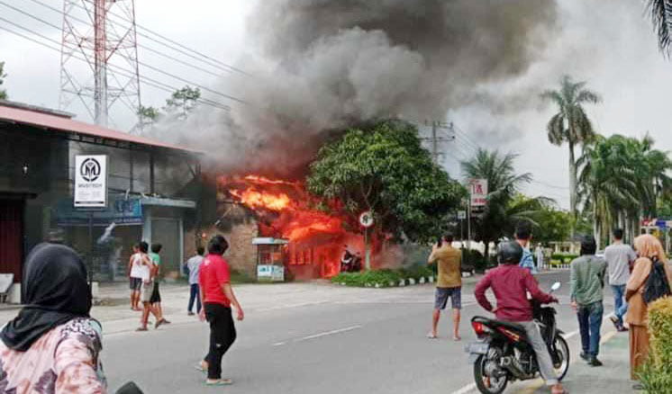 AGAM,METRO–Kebakaran besar yang dipicu kebocoran tabung gas meludeskan satu rumah semi permanen dan dua petak warung di Jalan Sukarno Hatta Padang Baru, Kecamatan Lubuk Basung tepatnya di depan Rumah Dinas Ketua DPRD Agam, pada Senin (15/1) sekitar pukul 13.00 WIB.