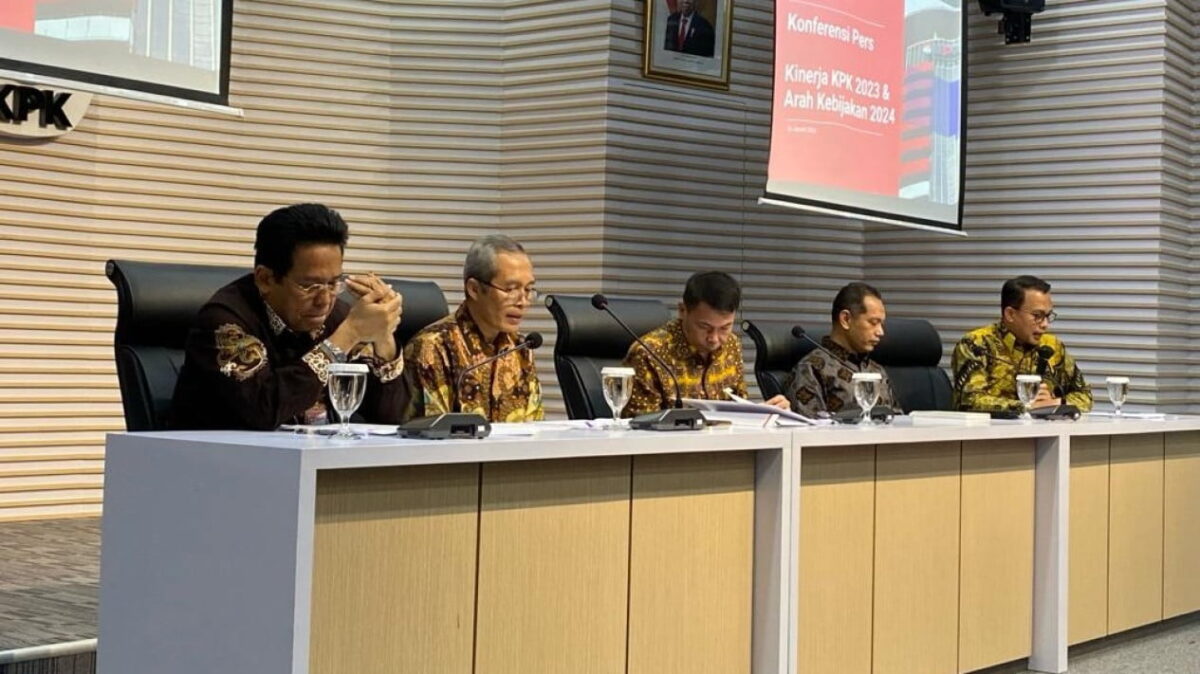 “Selama tahun 2023, KPK telah menetapkan tersangka satu orang gubernur, lima bupati/wali kota, satu kepala lembaga, dua menteri/wakil menteri. Hal ini menunjukkan bahwa masih tingginya risiko korupsi di sektor pemerintahan baik daerah maupun pusat,” kata Wakil Ketua KPK Alexander Marwata dalam konferensi pers kinerja KPK 2023 dan Arah Kebijakan 2024 di Gedung Merah Putih KPK, Jakarta, Selasa (16/1).