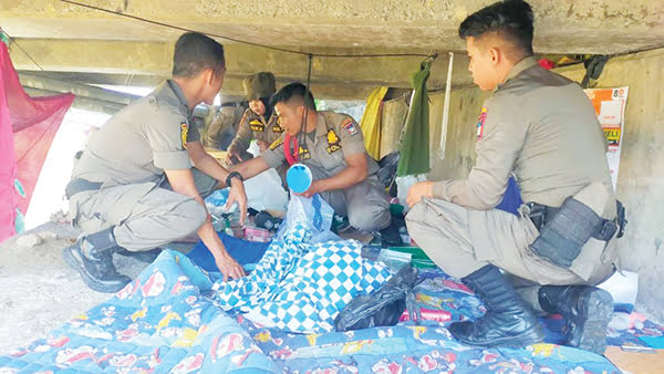 MARAPALAM, METRO–Tim gabungan dari Satuan Polisi Pamong Praja (Satpol PP), Dinas Sosial (Dinsos) dan instansi terkait menertibkan penginapan yang berada di kolong jembatan. Informasinya, petugas menemukan masyarakat yang tinggal di bawah kolong jembatan kawasan Kubu Marapalam, Kecamatan Padang Timur.