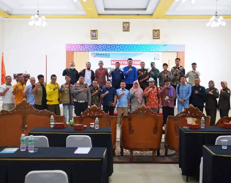 FOTO BERSAMA— Foto bersama Bawaslu dengan stakholder usai Rapat Fasilitasi Sentra Gakkumdu.