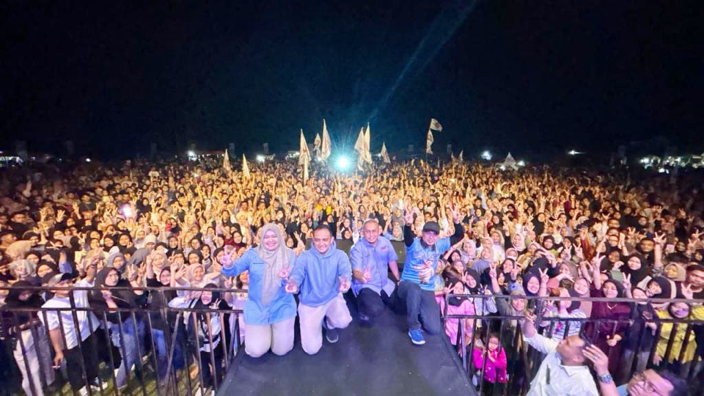 LIMAPULUH KOTA, METRO–Konser Indonesia Maju Prabowo-Gibran ke-4 di Kabupaten Limapuluh Kota, Kamis (25/1) sukses besar. Lapangan Sepakbola Persada, Dangung Dangung penuh sesak oleh warga yang didominasi kaum muda dari kalangan minelial dan Generesi Z (Gen Z). Belasan ribu orang hadir dalam konser itu.