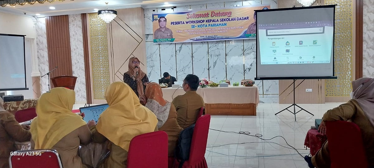 Kegiatan ini mengangkat tema Pemanfaatan E-Kinerja Terintegrasi PMM dan Konversi Angka Kredit dengan peserta Kepala Sekolah Sekolah Dasar se-Kota Pariaman, yang dilaksanakan di Balairung Rumah Dinas Wako Pariaman, yang berlangsung selama dua hari.