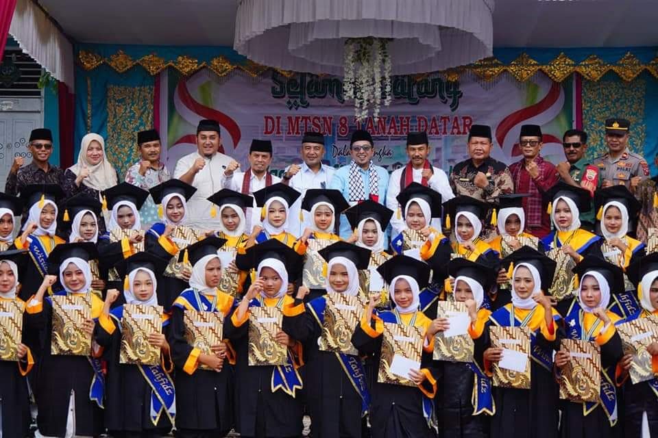 WAQAH TAHFIZ— Bupati Tanah Datar Eka Putra, berfoto bersama dengan pelajar MTsN 8 Tanahdatar yang mengikuti Waqaf Tahfiz angkatan III.