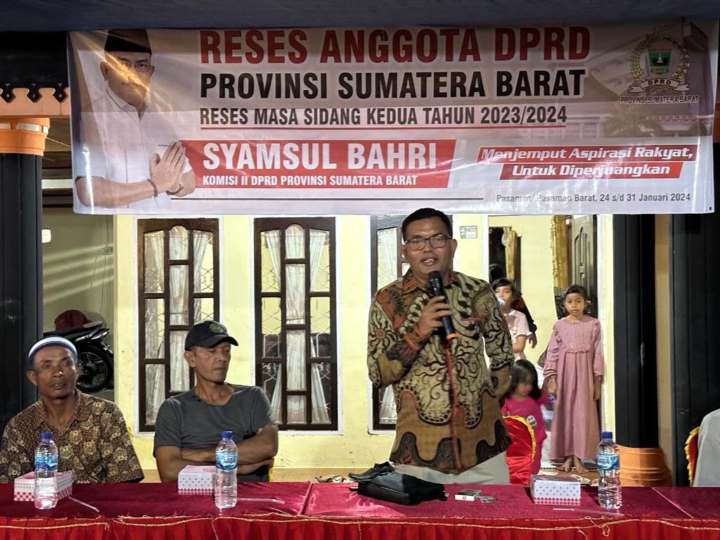 Aspirasi tersebut ditampung Samsul Bahri saat melaksanakan masa reses sidang pertama Tahun 2024 di daerah Pemilihannya, Kabupaten Pasaman, Kamis (25/1). Reses tersebut dihadiri para tokoh masyarakat, tokoh pemuda. Seperti Camat Rao, Wali Nagari Taruang-Taruang Utara, Kepala Jorong. Juga masyarakat yang hadir terlihat sangat antusias.