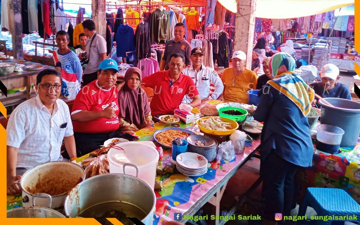Kunjungan Bupati Kabupaten Padangpariaman Suhatri Bur beserta rombongan ke Pasar Sungai Sariak yang merupakan salah satu pasar tradisional dalam daerahnya sambil mencicipi makanan khas di Pasar Sungai Sariak yaitu Bubua Campua dan Katupek Gulai Paku. (efa)