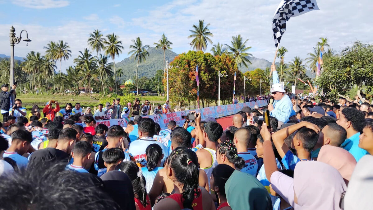LIMAPULUH KOTA, METRO —Ribuan peserta dari berbagai kabupaten dan kota dan juga ada yg dari luar Sumbar mengikuti lomba lari Indonesia Maju Run 2024 Prabowo-Gibran yang digelar (star dan finish) di Rumah Gadang Sungai Baringin Kecamatan Payakumbuh Kabupaten Limapuluh Kota, Minggu pagi (4/2).