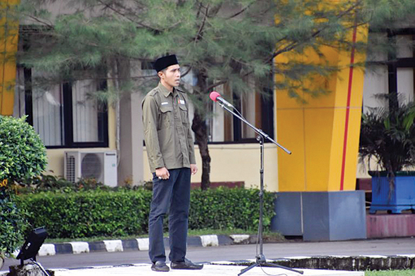 APEL— Yuhendra, Komisioner Bawaslu Agam saat memimpin apel pengawasan Pemilu 2024.
