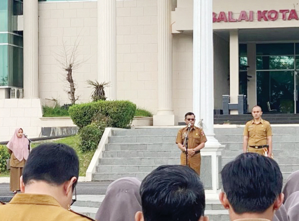 APEL PAGI— Sekdako Bukittinggi, Martias Wanto saat apel pagi ASN di lingkungan Balaikota Bukittinggi, Senin (12/2).