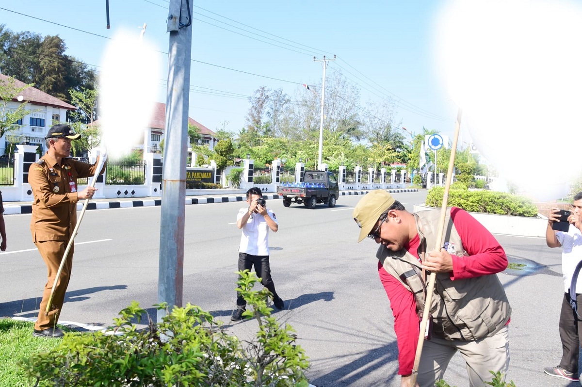 Memasuki masa tenang jelang Pemilihan Umum (Pemilu), Penjabat Walikota Pariaman, Roberia melepas petugas penertiban Alat Peraga Kampaye (APK) di Halaman Balaikota Pariaman.