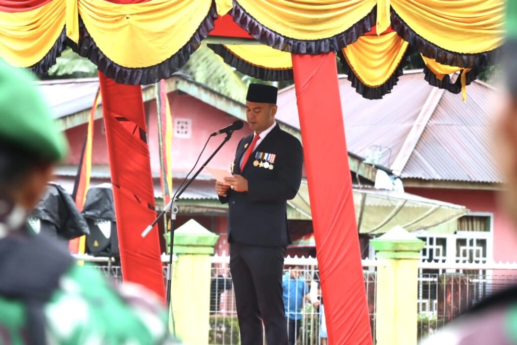 Walau dilaksanakan di tengah cuaca mendung dan gerimis, upacara yang dipimpin Bupati Benny Dwifa Yuswir tetap berlangsung khidmat.