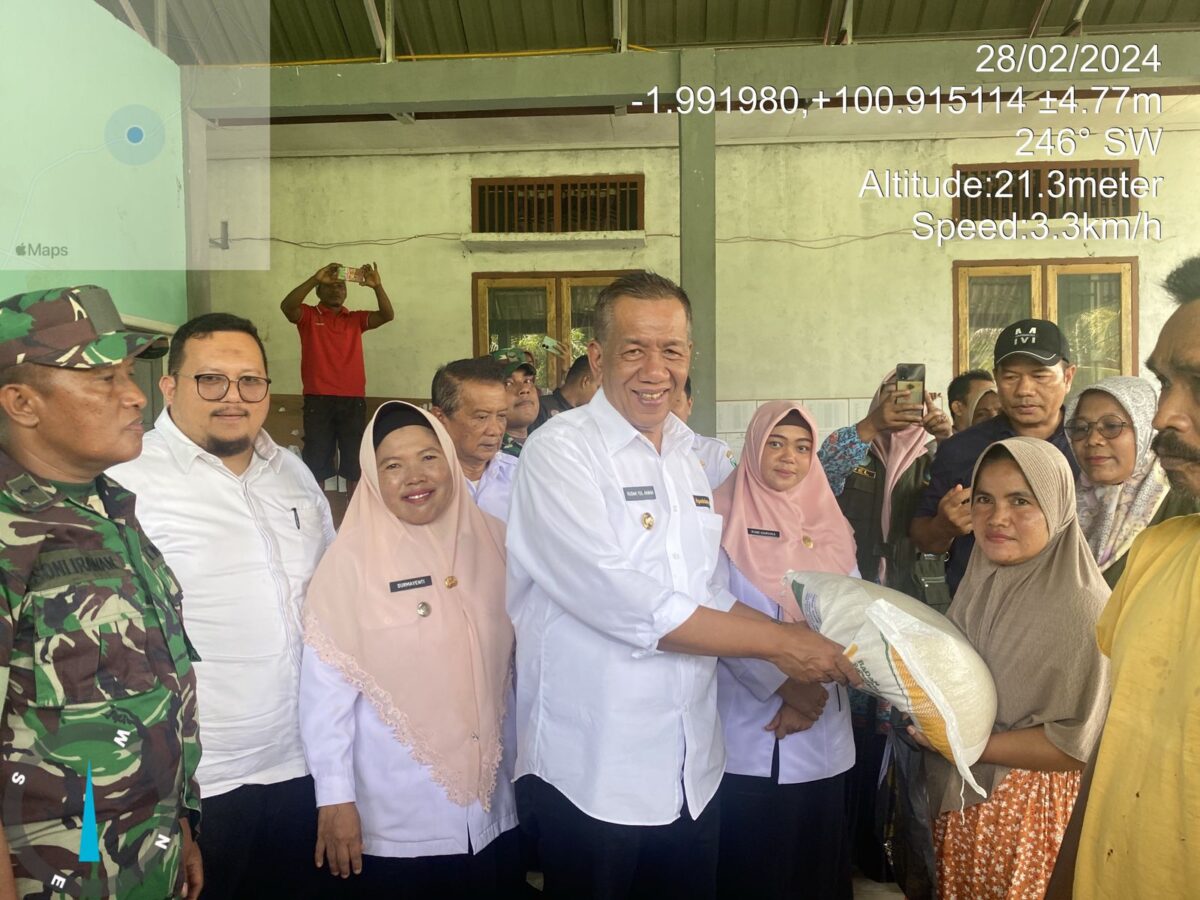 Teks Foto : Bupati Pesisir Selatan Drs.Rusma Yul Anwar M.Pd salurkan bantuan pangan beras ke pada warga di kecamatan Airpura dan Kecamatan Lunang, Kabupaten Pessel. Rabu (28/2/2024).