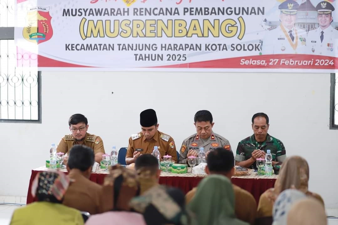 PEMBUKAAN MUSRENBANG— Wakil Wali Kota Solok, Ramadhani Kirana Putra membuka Musyawarah Perencanaan Pembangunan (Musrenbang) tingkat Kecamatan Tanjung Harapan dan melakukan doa bersama.