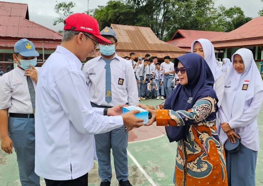 Tak hanya sekadar membagikan 2.000 masker kepada siswa, Ketua PMI Padang Panjang, Herki Toni, SKM, MARS didampingi Sekretaris, H. Firdaus, S.Pd dan Kepala Markas, Toney Hariyanto beserta jajaran lainnya juga melaksanakan edukasi bahaya abu vulkanik bagi kesehatan mereka. “Abu vulkanik dapat menyebabkan bahaya serius bagi kesehatan manusia dan lingkungan. Partikel-partikel kecil dalam abu tersebut dapat masuk ke dalam sistem pernapasan manusia, menyebabkan gangguan pernapasan, iritasi pada mata dan kulit, serta masalah kesehatan lainnya,” jelas Herki.