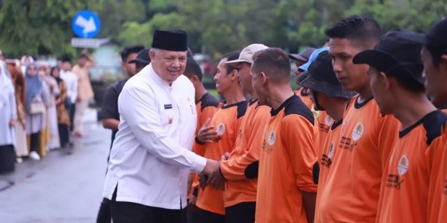 SALAMI—Wako Zul Elfian saat menyalami petugas kebersihan yang sudah membawa harum Kota Solok, khususnya dalam kebersihan.