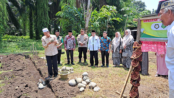 PASBAR, METRO–Wakil Bupati Pasaman Barat, Risnawanto melakukan peletakan batu pertama Madrasah Ibtidaiyah Swasta (MIS) Ruhul Ulum yang beralamat di Pasdam, Kejorongan Kampung Cubadak, Nagari Lingkuang Aua Timur Kecamatan Pa­saman, Kabupaten Pasaman Barat, pada Kamis (14/3).