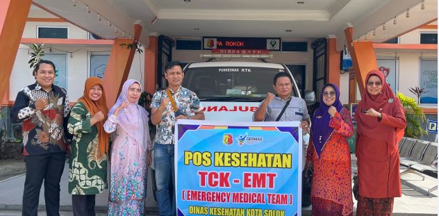 Kepala Dinas Kesehatan Kota Solok Elvi Rosanti, melepas keberangkatan Tim Medis bersama Sekretaris Dinas Kesehatan Kota Solok Dra. Dessy Syafril, Apt, MPH, yang mana Tim EMT ini berasal dari Tim Medis Dinas Kesehatan Kota Solok, Tim Medis Puskesmas Tanjung Paku, dan Tim Medis IFAL.