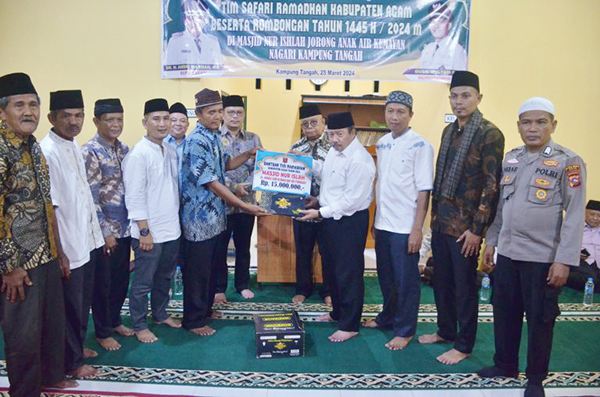 Bantuan tersebut diserahkan Bupati Agam, Dr H Andri Warman, MM, kepada pengurus masjid saat melakukan safari Ramadan ke masjid tersebut, Senin, (25/3).
