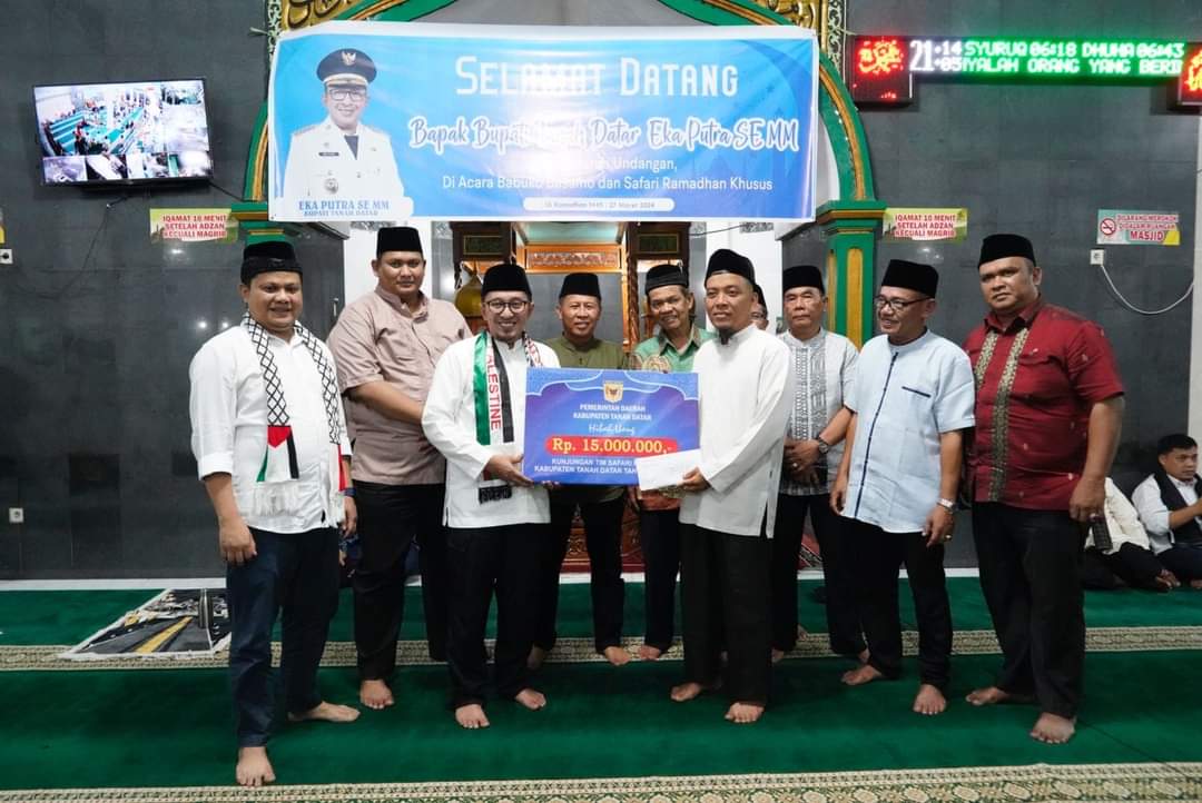 Pada saat tersebut Bupati Eka Putra juga serahkan bantuan berupa uang tunai sebesar Rp15.000.000, 1 (satu) unit vacum cleaner dan uang berbuka puasa bersama sebesar Rp1.600.000. yang diterima langsung pengurus masjid. (ant)