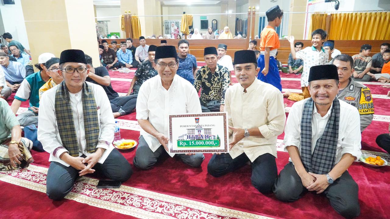 Tidak hanya itu, Wako Hendri Septa juga menyerahkan bantuan hibah dari Pemko Padang untuk mesjid Al Wustha sebesar Rp 15 juta, yang di dampingi oleh camat Padang Barat, Pagara Anas.(brm)