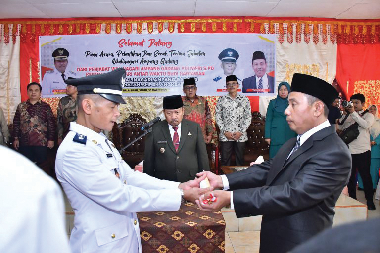 Pelantikan sekaligus sertijab itu ditandai pembacaan sumpah dan penyerahan memori jabatan dari Wali nagari Yulyafri kepada PAW Wali Nagari Ampang Gadang Budi Hartawan.