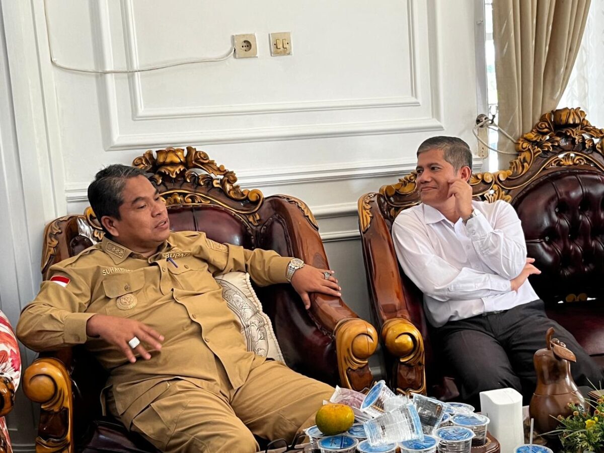 DIALOG—Bupati Padangpariaman Suhatri Bur saat dialog dengan Rektor ISI Padangpanjang Febri Yulika di ruang kerja bupati.