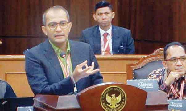 “Masalah keabsahan tersebut adalah sengketa proses dan bukan merupakan kewenangan MK, seyogianya ketika KPU mengeluarkan keputusan terkait pasangan calon Prabowo Subiatno dan Gibran Rakabuming Raka maka pasangan calon presiden dan wakil presiden yang berkeberatan terhadap keabsangan tersebut seharusnya mengajukan gugatan ke PTUN,” kata pria yang karib disapa Eddy Hiariej saat menyampaikan keahliannya dari pihak Prabowo-Gibran di Gedung MK, Jakarta, Kamis (4/4).