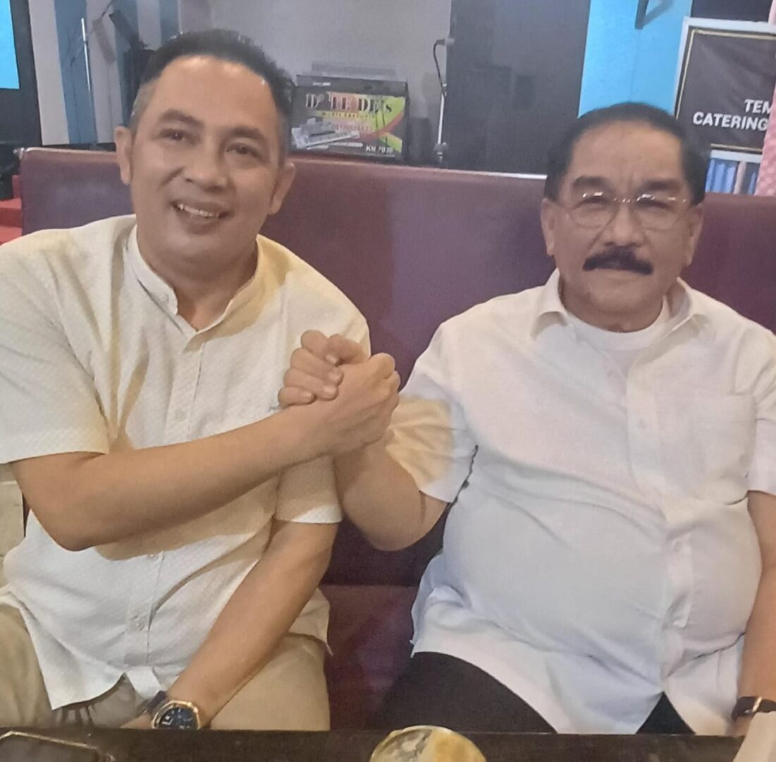 H.Suberman salam komando dengan anggota DPR RI terpikih M. Shadiq Pasadigoe usai silahturahhmi dengan wartawan Tanahdatar. (chandra antoni)