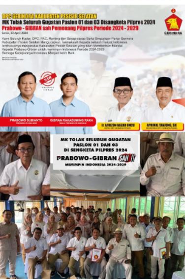 Terakhir , Pasca putusan MK Kalimat terakhir tambah Bg, DPC, Fraksi DPRD, Pac dan Ranting Partai gerindra Pessel terima kasih atas perjuangan dan kerja keras dari seluruh masyarakat Pessel.