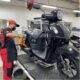 SERVIS-Mekanik di bengkel resmi Yamaha servis kendaraan milik konsumen.