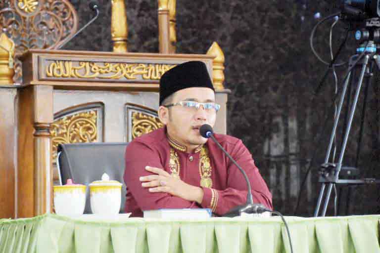 PENGAJIAN— Mubaligh Agam dan Bukittinggi, Ustaz Andi Firdaus memberikan pengajian dalam wirid mingguan Korpri Kabupaten Agam pada Jumat (26/4) di Masjid Agung Nurul Falah.