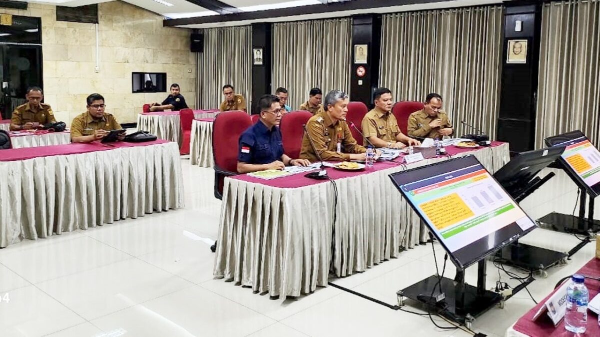 EVALUASI KINERJA— Pj Wali Kota Pariaman Roberia bersama jajarannya mengikuti dievaluasi oleh Kemendagri secara zoom meeting.