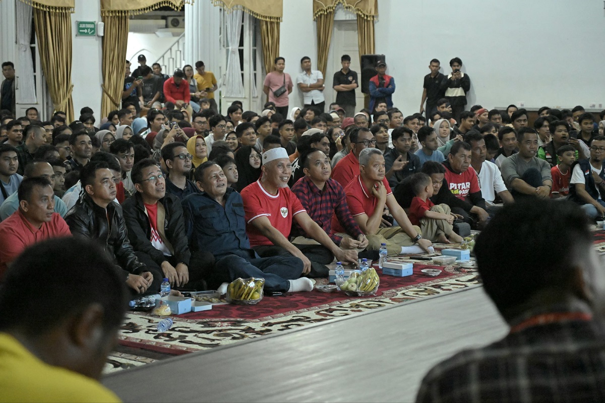 Suasana Nobar di Auditorium Istana Gubernuran menurutnya begitu hangat. Itu terbukti kala Timnas berhasil mencetak gol, seluruh masyarakat saling berjabat tangan, meskipun tidak saling mengenal secara pribadi. “Sepak bola, telah berhasil memangkas srata sosial dan mempersatukan masyarakat. Ini hebat dan patut disyukuri bersama,” pungkas Raflis Tampak hadir dalam kegiatan Nobar tersebut, seluruh Unsur Forkopimda Sumbar, Kepala Dinas dilingkup Pemprov Sumbar, serta ratusan masyarakat umum para pendukung Timnas U23 Indonesia. Dalam kesempatan tersebut, panitia juga membagikan doorprize berupa 3 unit sepeda listrik dan hadiah menarik lainnya. (fan)