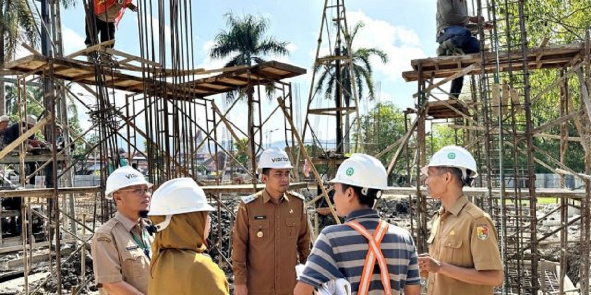 SOLOK, METRO–Wakil Wali Kota (wawako) Solok Ramadhani Kirana Putra, meninjau pembangunan gedung Perpustakaan Umum Daerah yang berlokasi di Terminal Bareh Solok. Diakui Ramadhani pendanaan pembangunan gedung Perpustakaan umum ini bersumber dari Dana Alokasi Khusus (DAK) yang diperoleh dari Perpustakaan Nasional Republik Indonesia sebesar Rp10 Miliar.