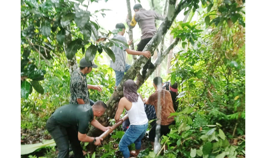 Ditambahkan Iptu Aldy, lantaran korban hilang, hari ini (kemarin-red), keluarga kembali mencari korban. Setelah beberapa jam dicari, keluarga dibuat kaget karena menemukan korban tergantung di sebuah batang pohon nangka dekat rumah yang berjarak lebih kurang 50 Meter dengan menggunakan tali nilon sepanjang lebih kurang 2,5 Meter.